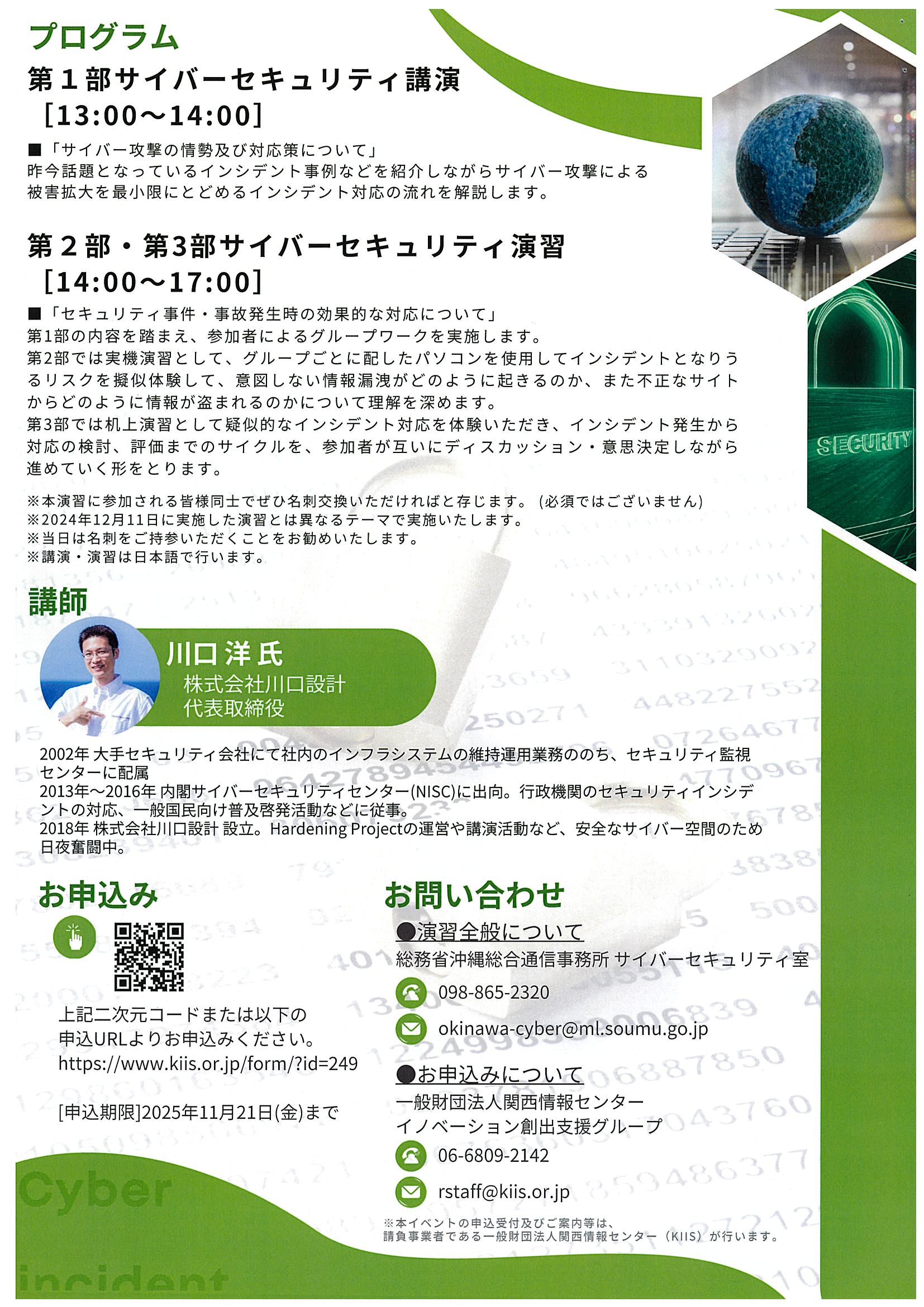 【総務省沖縄総合通信事務所】様より、「サイバーインシデント演習in沖縄」についてお知らせがありましたのでご案内いたします。