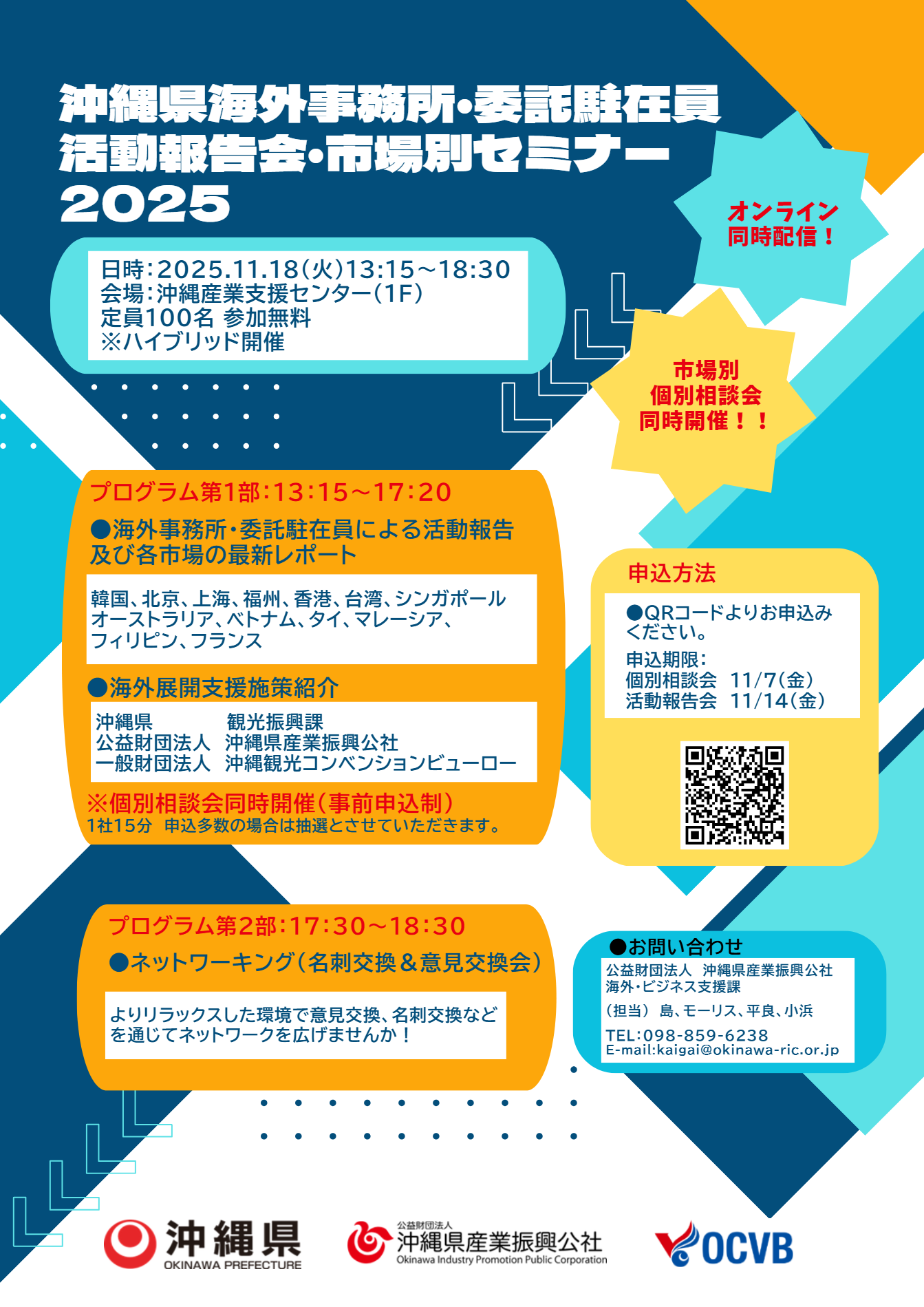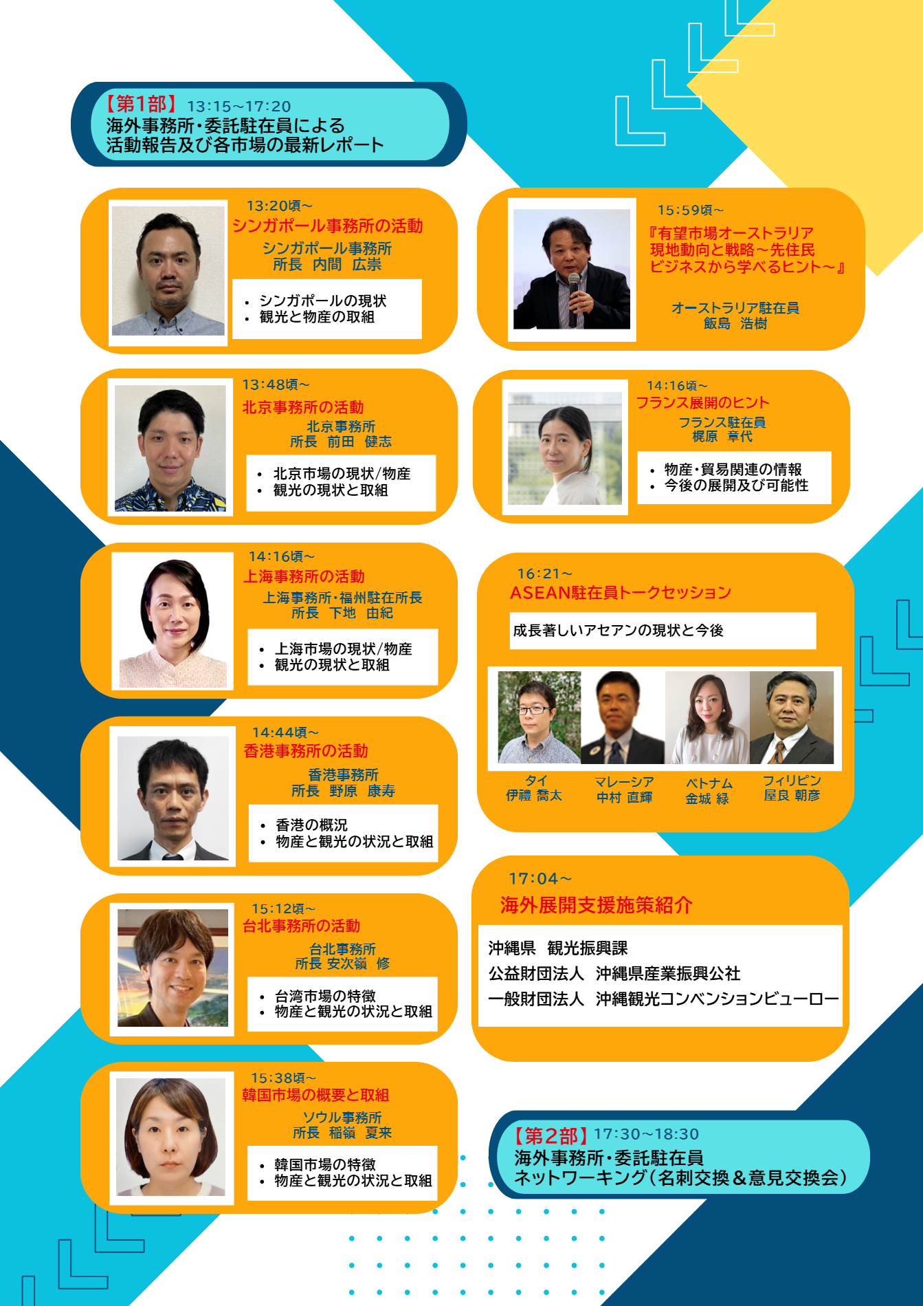沖縄県産業振興公社の海外事務所や委託駐在員が展開する各市場の情報をお伝えします。観光・物産などビジネスにおける現地の状況や市場の変化、沖縄イベント情報など、リアルとオンラインのハイプリットでお伝えします。